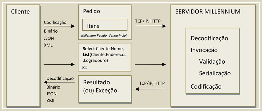 Para permitir a chamada das funções expostas pelo servidor Linx emillennium por qualquer linguagem de programação do Windows, o Linx emillennium desenvolveu um componente ActiveX capaz de manipular e invocar as transações no servidor de aplicações por meio de TCP/IP utilizando um protocolo extremamente compacto e eficiente. A versão 2.0 do SDK possui também um gateway que permite a comunicação via OData/REST com o servidor. Este protocolo utiliza apenas padrões abertos da internet, permitindo a qualquer linguagem capaz de fazer chamadas HTTP acesso às funções do servidor. Qualquer nova integração deve utilizar a API OData/REST.