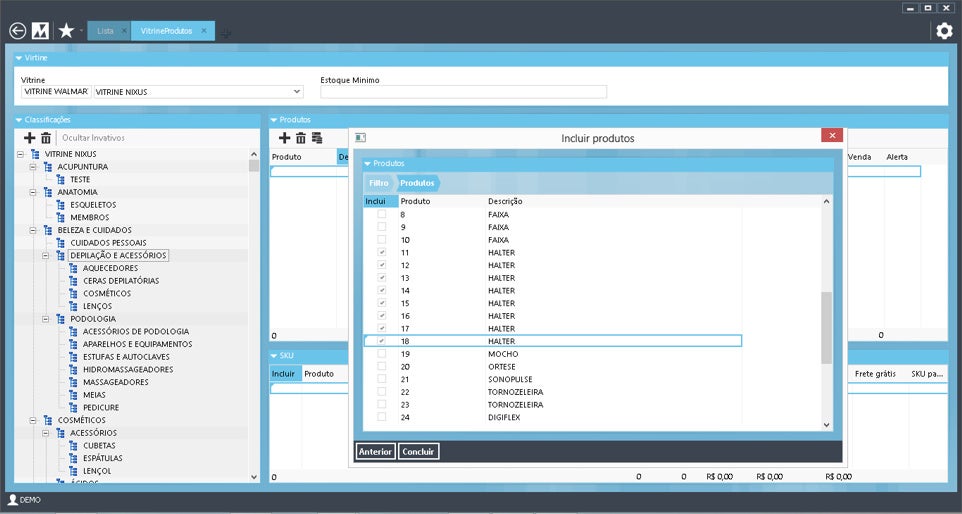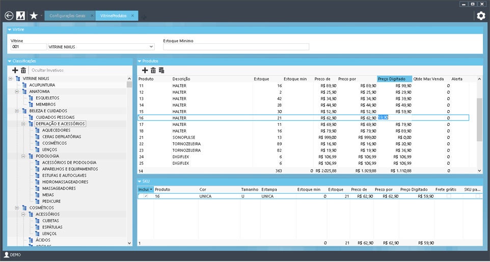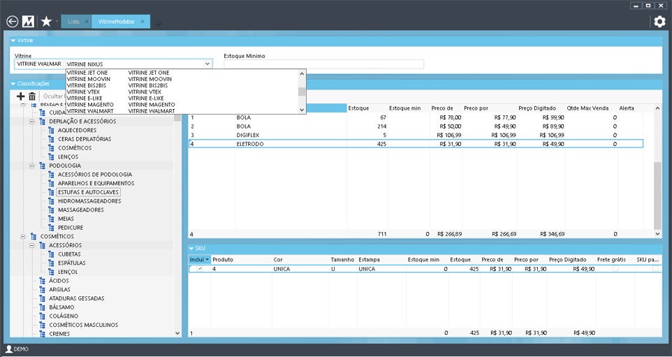 O Cadastro de Vitrines foi criado para automatizar e dar melhor visibilidade aos processos de integração de produtos em diversas plataformas. Com esse novo conceito, o gerenciamento de produtos dentro das árvores de navegação fica mais natural, rápido e poderoso, pois o usuário pode inserir produtos em quantas posições quiser. Além disso, às classificações de produto são usadas para a gestão de categorias e previsão de demanda, elas ficam isoladas da navegação sem gerar distúrbios nos resultados. Com as vitrines, o Linx emillennium gerencia múltiplas lojas e/ou múltiplas empresas de maneira específica e única.